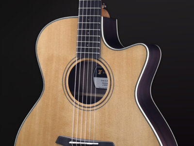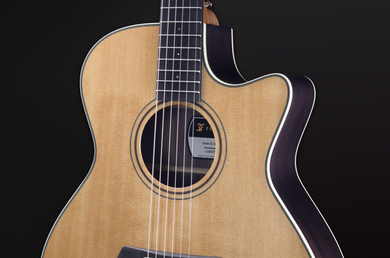 Das Modell Green TR a verfügt über eine vollmassive Konstruktion mit einer Decke aus sorgfältig ausgewählter Sitka-Fichte sowie Boden und Zargen aus indischem Palisander. Die Fichtendecke wird durch einen proprietären Torrefizierungsprozess künstlich gealtert, wodurch eine erhöhte klangliche Reife, verbesserte Ansprache, ein erweiterter Dynamikumfang sowie ein wärmerer, offenerer Klangcharakter erreicht werden. Gleichzeitig erhält das Instrument eine dezent dunklere, vintage-inspirierte Optik. Indischer Palisander steuert reiche Obertöne, klare Artikulation und tiefe, präzise definierte Bässe bei und bildet damit eine harmonisch komplexe und ausgewogene klangliche Grundlage.