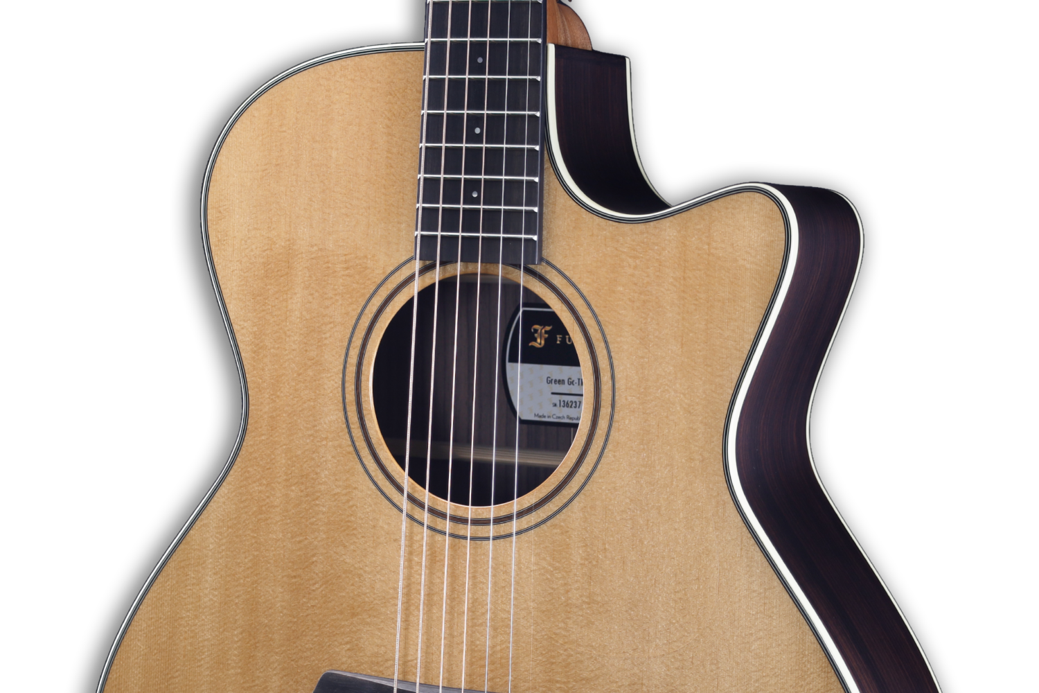 Das Modell Green TR a verfügt über eine vollmassive Konstruktion mit einer Decke aus sorgfältig ausgewählter Sitka-Fichte sowie Boden und Zargen aus indischem Palisander. Die Fichtendecke wird durch einen proprietären Torrefizierungsprozess künstlich gealtert, wodurch eine erhöhte klangliche Reife, verbesserte Ansprache, ein erweiterter Dynamikumfang sowie ein wärmerer, offenerer Klangcharakter erreicht werden. Gleichzeitig erhält das Instrument eine dezent dunklere, vintage-inspirierte Optik. Indischer Palisander steuert reiche Obertöne, klare Artikulation und tiefe, präzise definierte Bässe bei und bildet damit eine harmonisch komplexe und ausgewogene klangliche Grundlage.