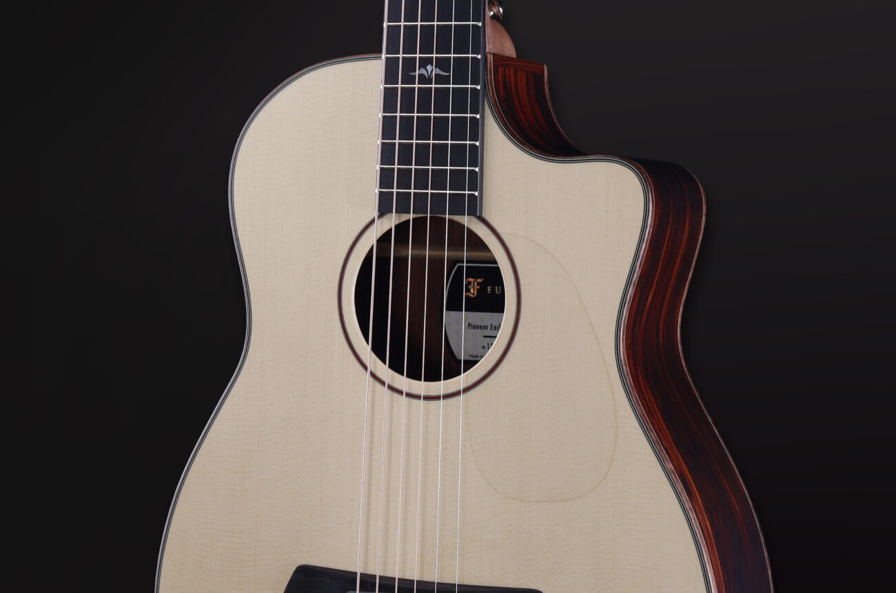 Die Pioneer Exclusive-EC a hebt dieses Modell auf ein neues Niveau: mit einer Decke aus Engelmannfichte, die durch feine Dynamik und reiche Obertöne überzeugt, sowie Boden und Zargen aus exotischem Cocobolo mit ausdrucksstarker Maserung und edlen dunklen Farbtönen. Das Ergebnis ist ein Instrument mit eleganter Optik und klanglicher Persönlichkeit – voller Sustain, Klarheit und Tiefe.