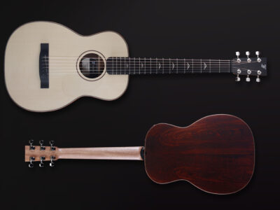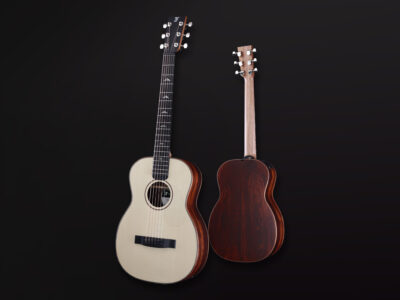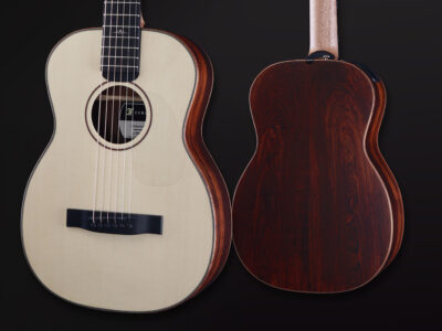 - Exclusive foldable travel guitar made from all-solid tonewoods, featuring an Engelmann spruce top soundboard and exotic cocobolo back and sides
