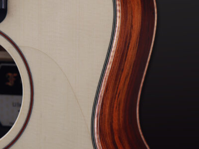 This exclusive edition features a solid Engelmann spruce top soundboard known for its soft dynamic response and rich tonal character. The back and sides are crafted from exotic cocobolo, selected for its striking grain and deep, natural hues. The soundboard is individually voiced for optimal acoustic performance, delivering a lively, balanced tone with excellent articulation.
